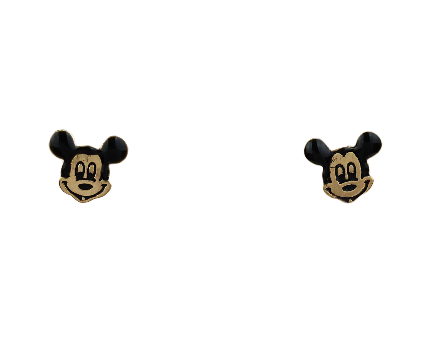 Small children’s size 14k yellow gold “Mickey Mouse” stud earrings with enamel accents. They measure approximately 8mm in diameter and weigh 0.4 gram.