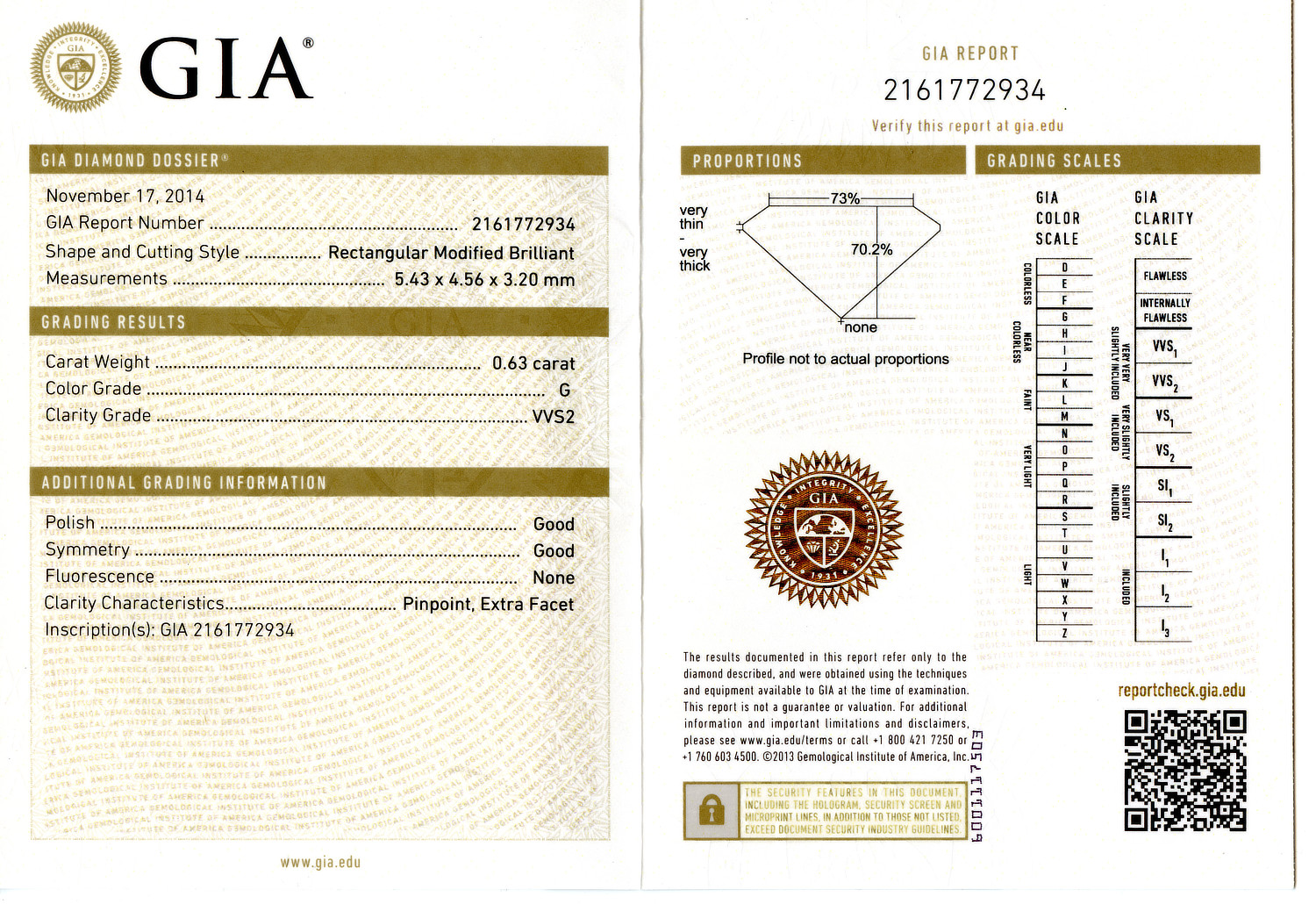 Loose GIA Certified 0.63ct Princess Cut Diamond G/VVS2. GIA cert # 2161772934 is included in the sale.