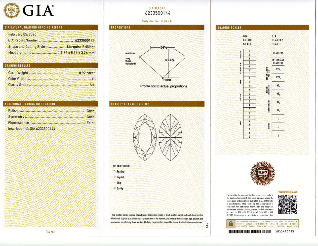 Loose GIA Certified 0.92ct Marquise Cut Diamond H/SI1. GIA cert # 6233500144 is included in the sale. Laser engraved!
