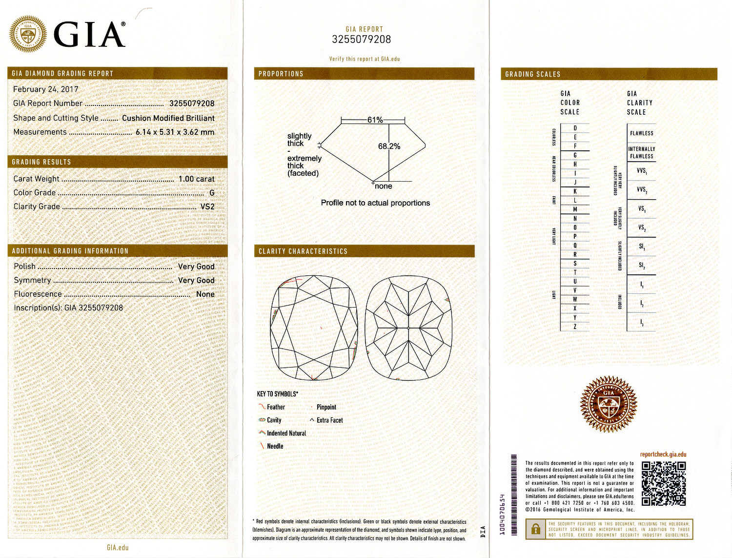 Loose GIA Certified 1.00ct Cushion Cut Diamond G/VS2. GIA cert # 3255079208 is included in the sale. Laser engraved!