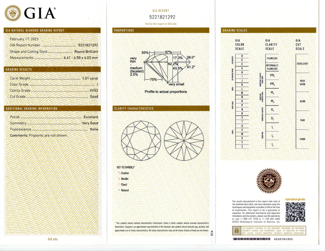 Loose GIA Certified 1.01ct Round Brilliant Cut Diamond I/VVS2. GIA cert # 5221821292 is included in the sale.