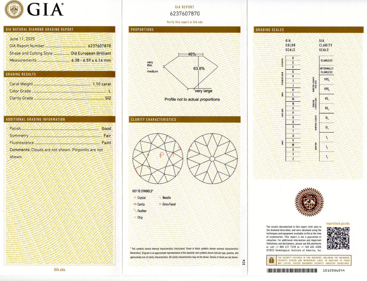 Loose GIA Certified 1.10ct Old European Cut Diamond L/SI2. GIA cert # 6237607870 is included in the sale.