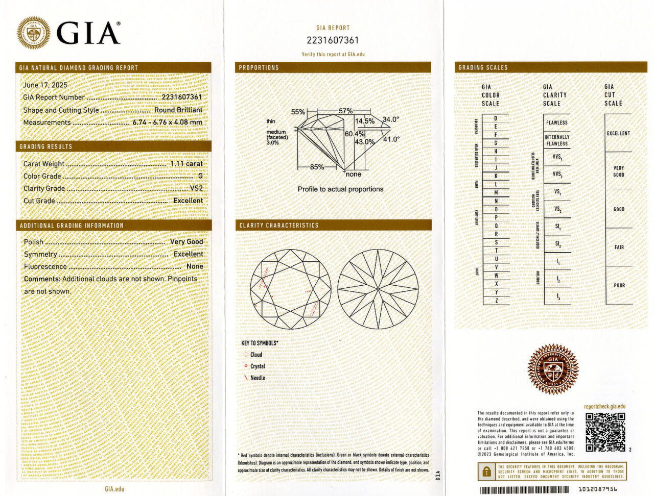 Loose GIA Certified 1.11ct Round Brilliant Cut Diamond D/VS2. GIA cert # 2231607361 is included in the sale.