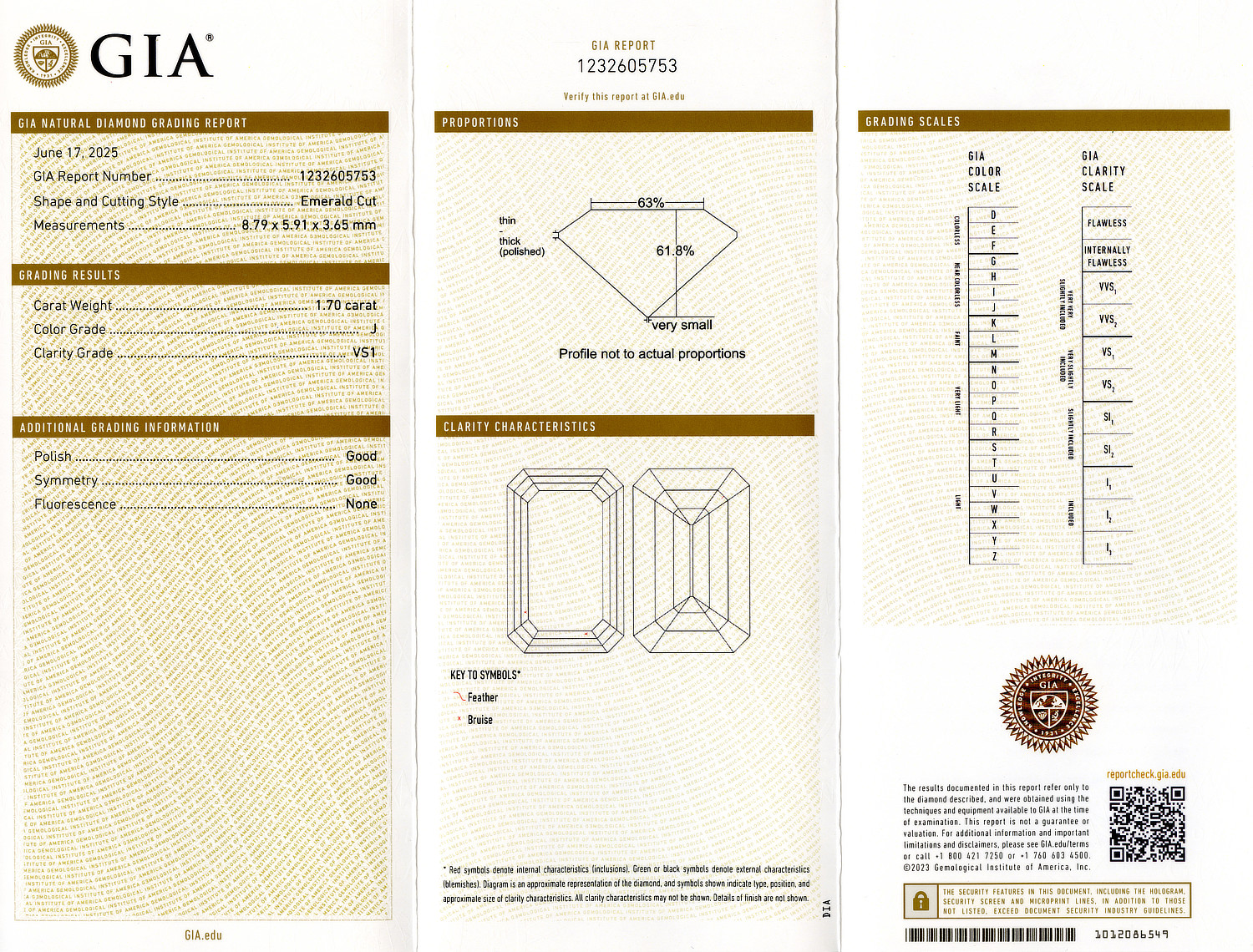 Loose GIA Certified 1.70ct Emerald Cut Diamond J/VS1. GIA cert # 1232605753 is included in the sale.