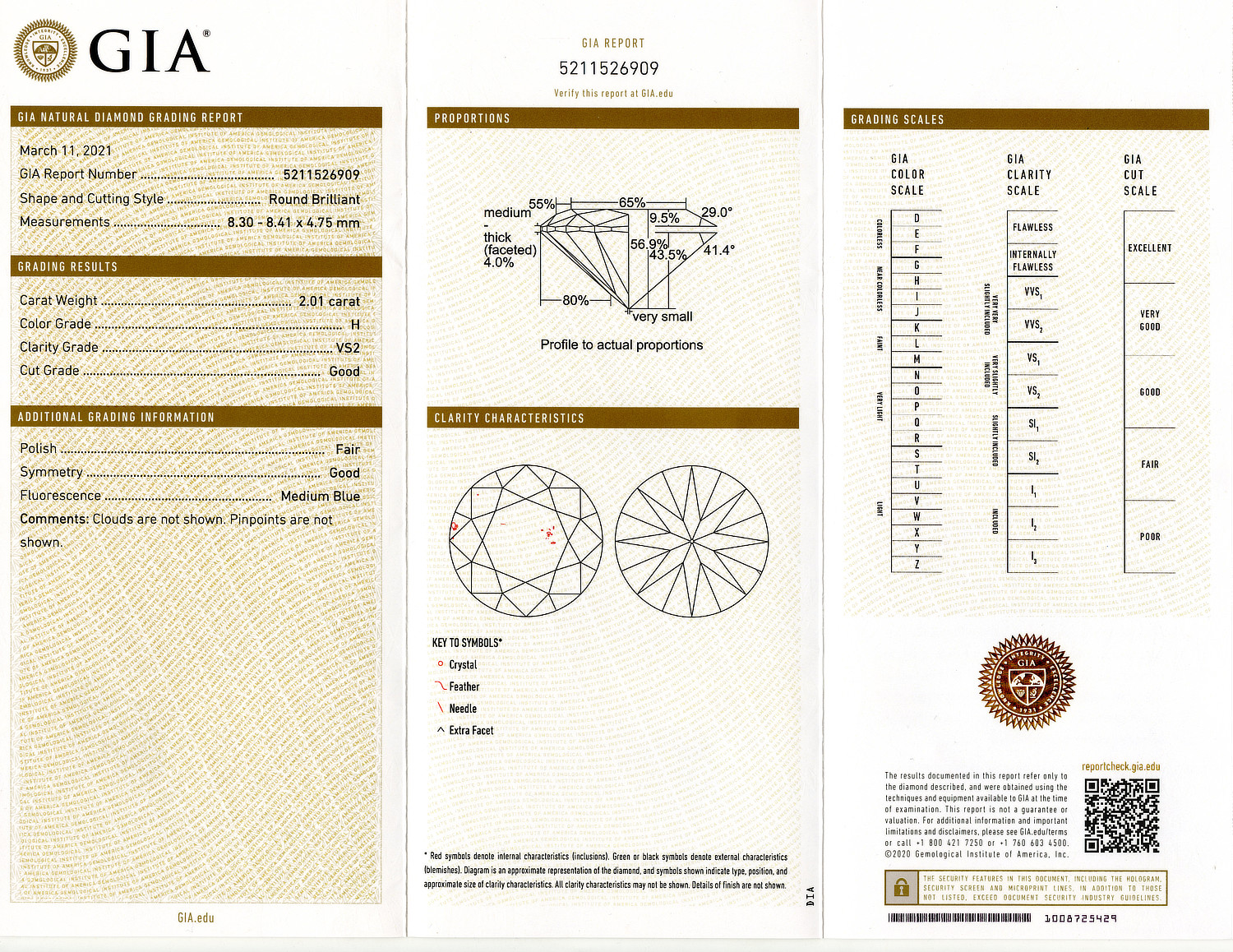 Loose GIA Certified 2.01ct Round Brilliant Cut Diamond H/VS2. GIA cert # 5211526909 is included in the sale.