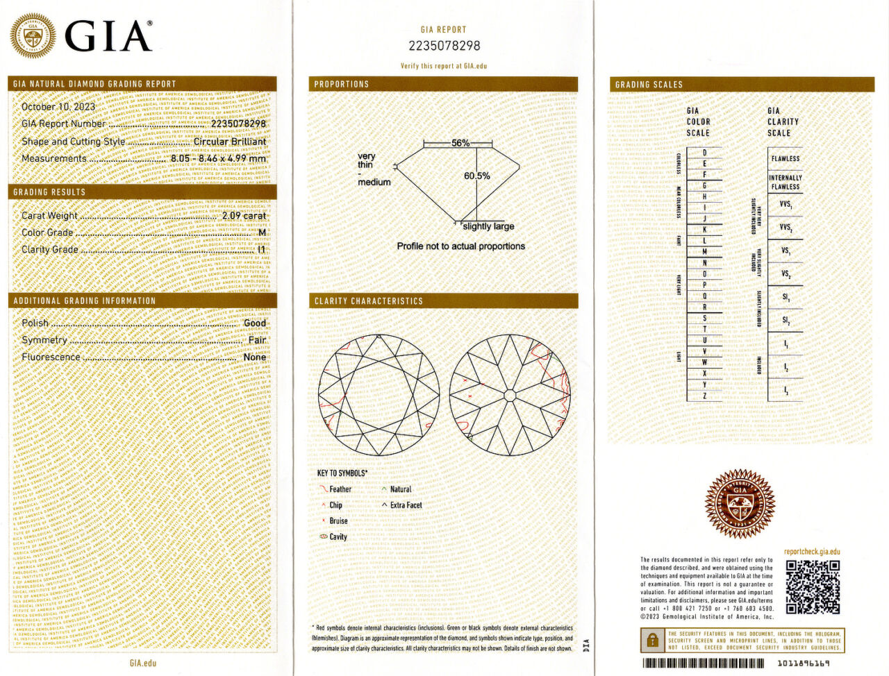 Loose GIA Certified 2.09ct Circular Brilliant Cut Diamond M/I1. GIA cert # 2235078298 is included in the sale.
