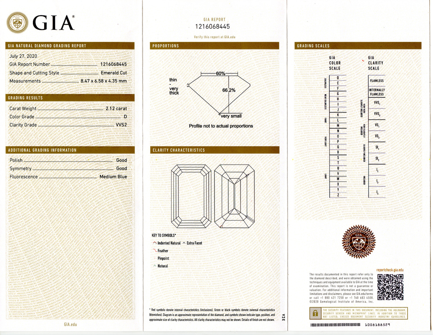 Loose GIA Certified 2.12ct Emerald Cut Diamond D/VVS2. GIA cert # 1216068445 is included in the sale.