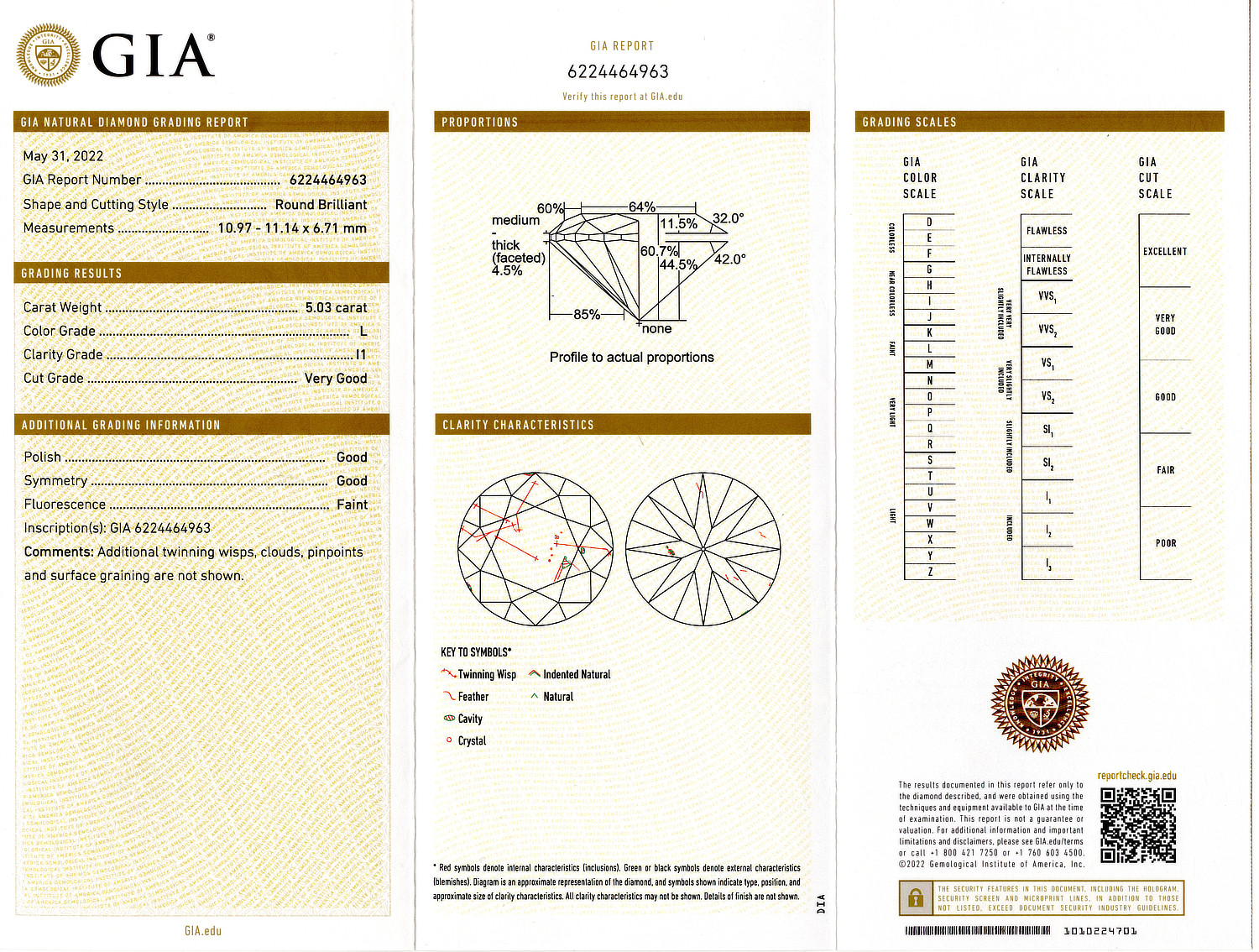 Loose GIA Certified 5.03ct Round Brilliant Cut Diamond L/I1. GIA cert # 6224464963 is included in the sale.