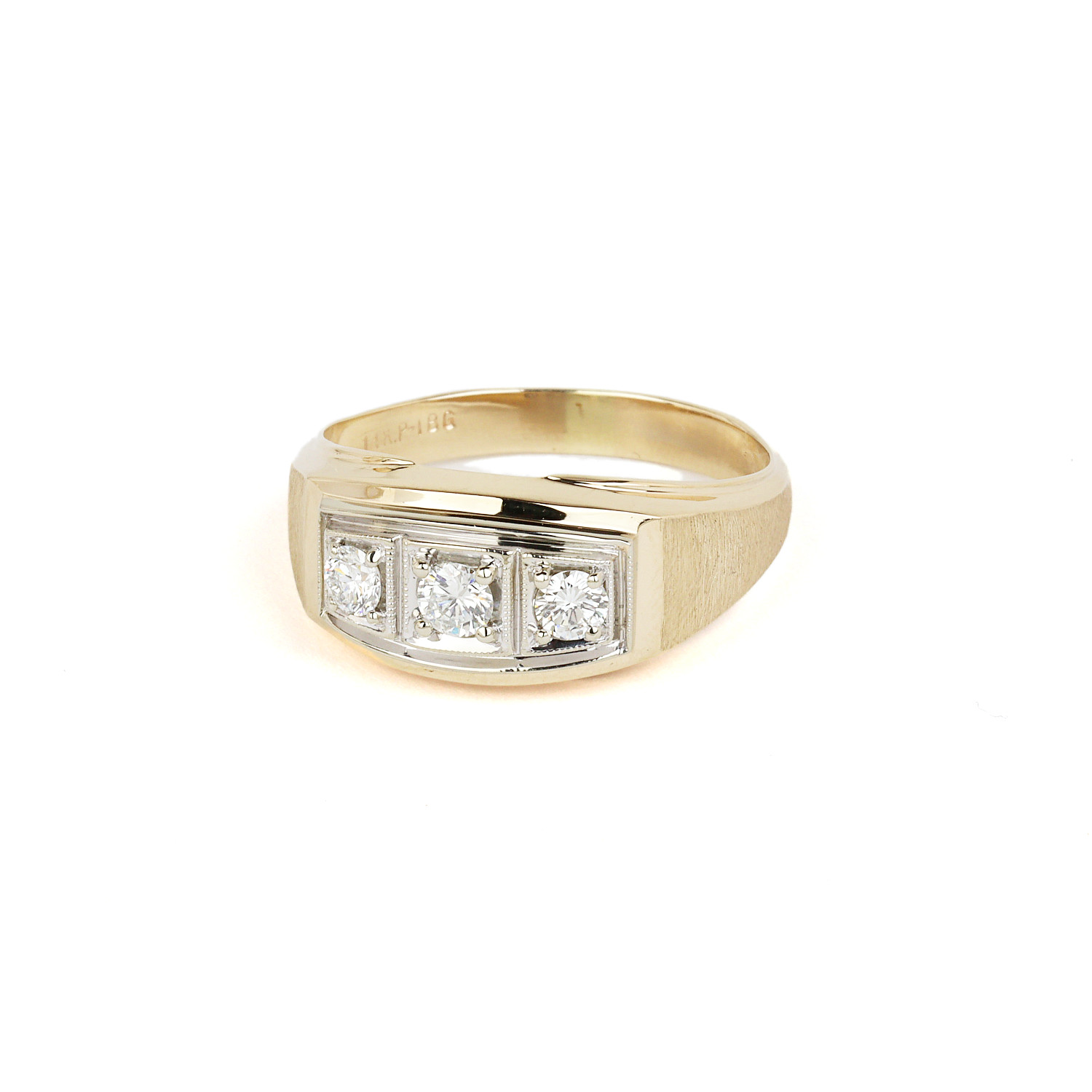 14k yellow and white gold ring with diamonds which amount to approximately 0.52 carat TW (SI2-I1 clarity/G-H-I color). Fits a size 11.25 finger, measures 10mm wide across the top, and weighs 7.5 grams.