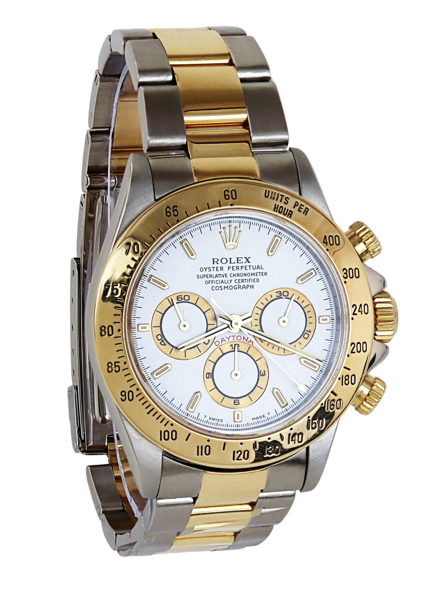 Rolex men’s 18k yellow gold & stainless steel Daytona 16523 wristwatch. Made circa 1993. No documents are included.