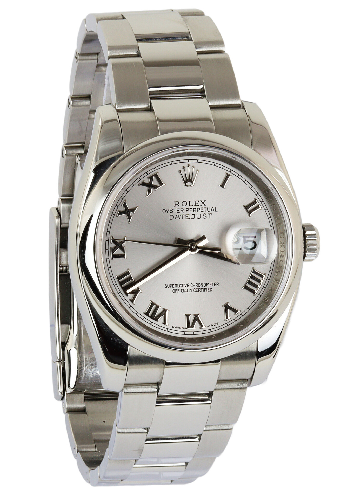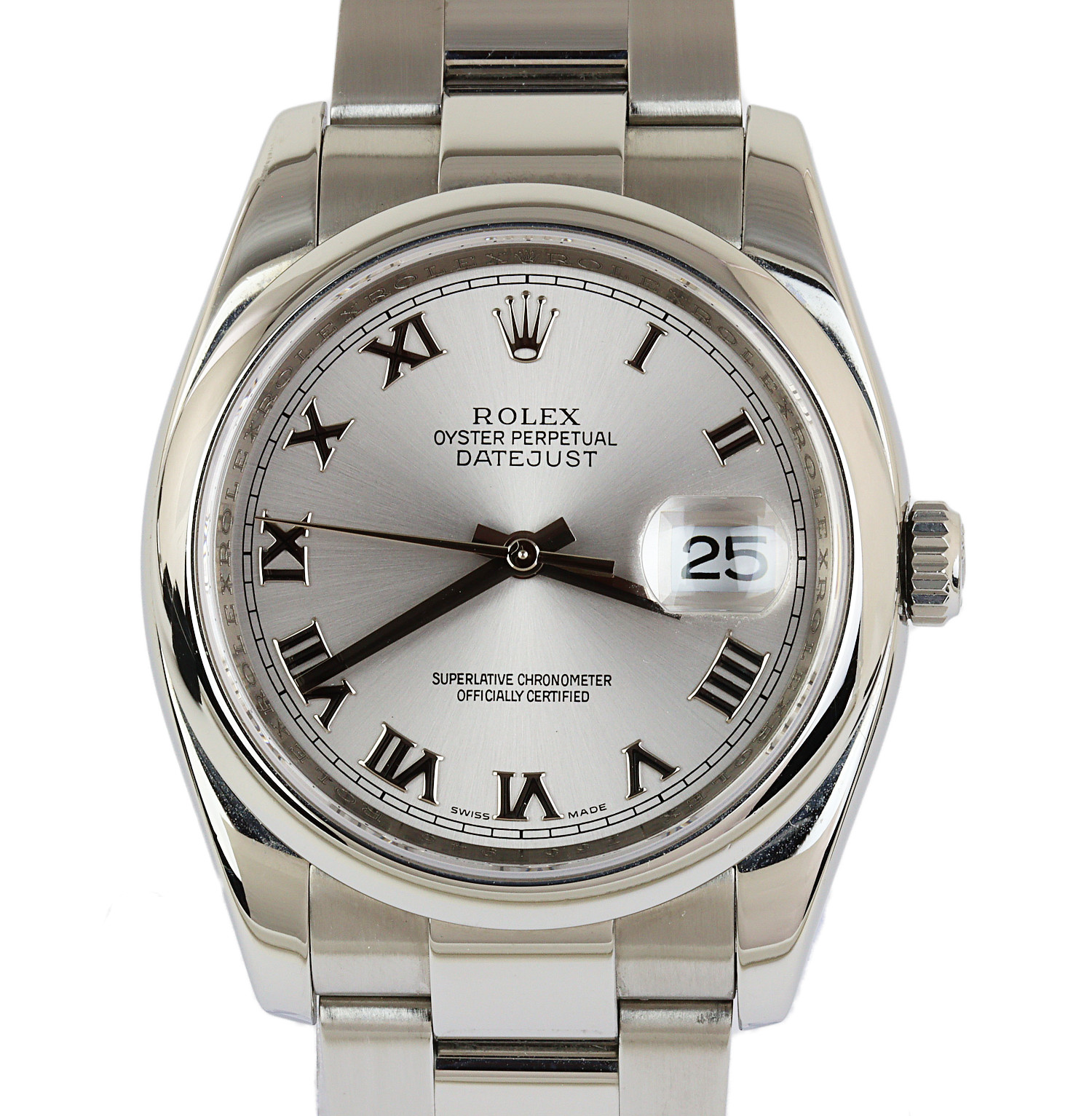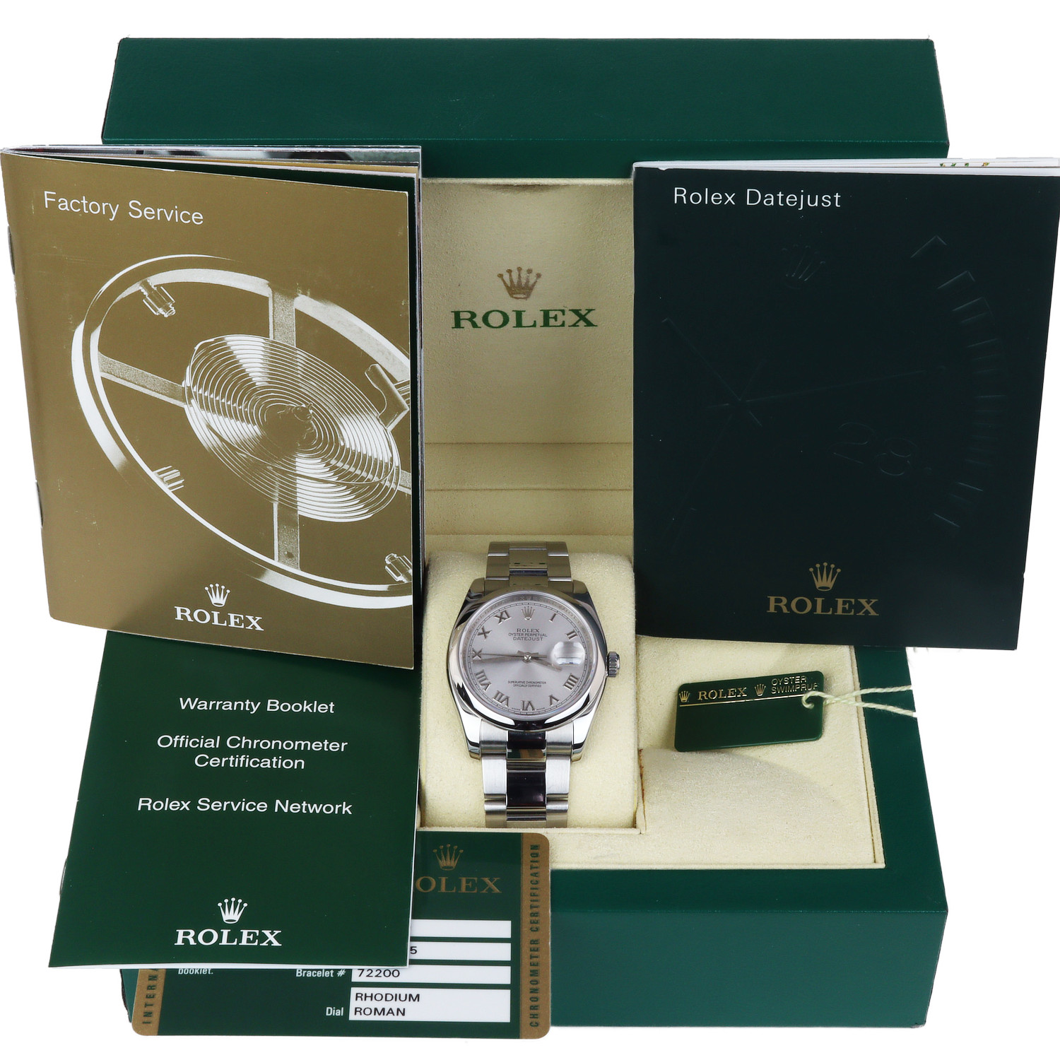 Rolex men’s stainless steel Datejust 116200 wristwatch. Featuring a rhodium dial Made circa 2008. Documents are included in the sale.