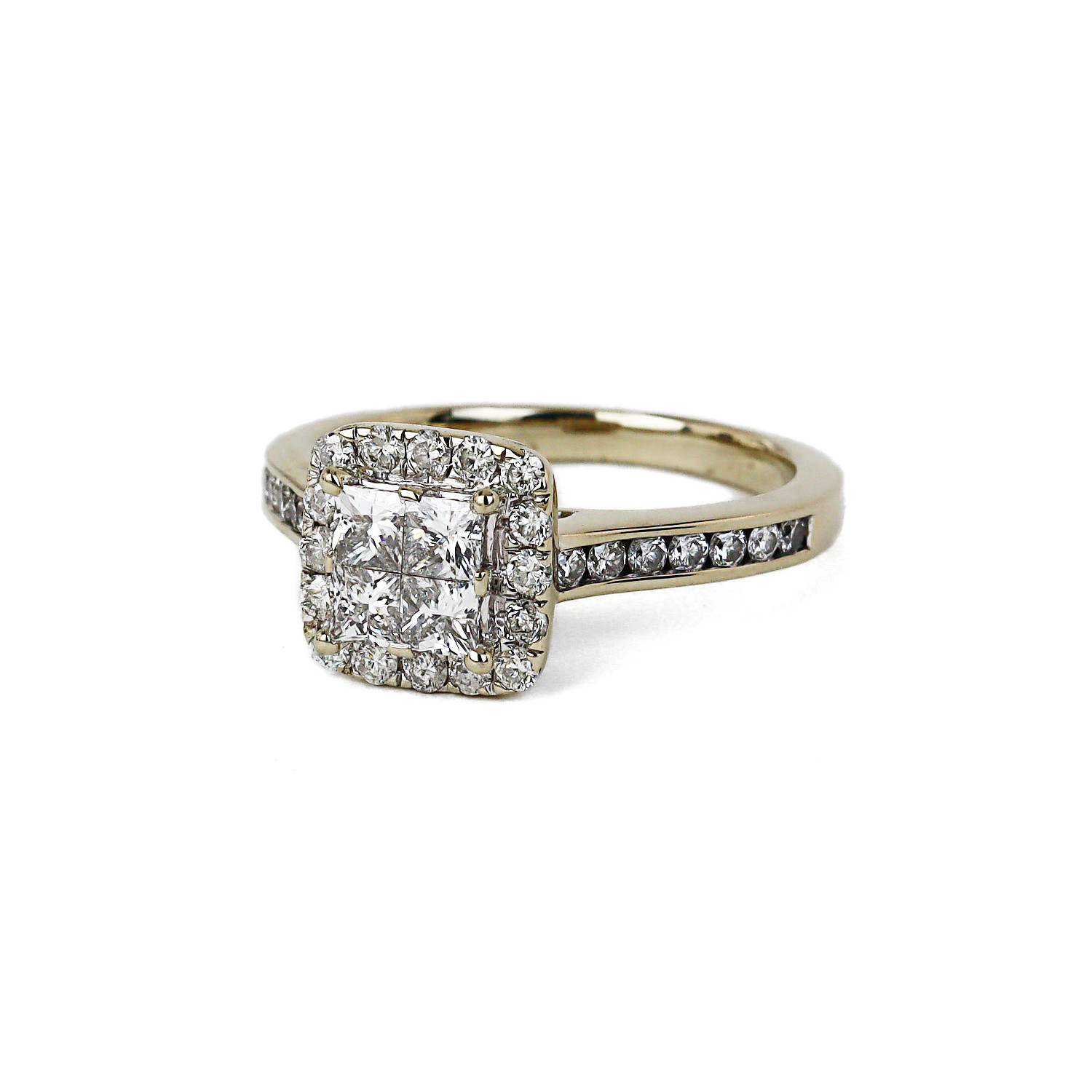 14k white gold ring with diamonds which amount to approximately 1.00 carat TW (SI2-I1 clarity/H-I-J color). Fits a size 6.5 finger, measures 9mm wide across the top, and weighs 4.0 grams.