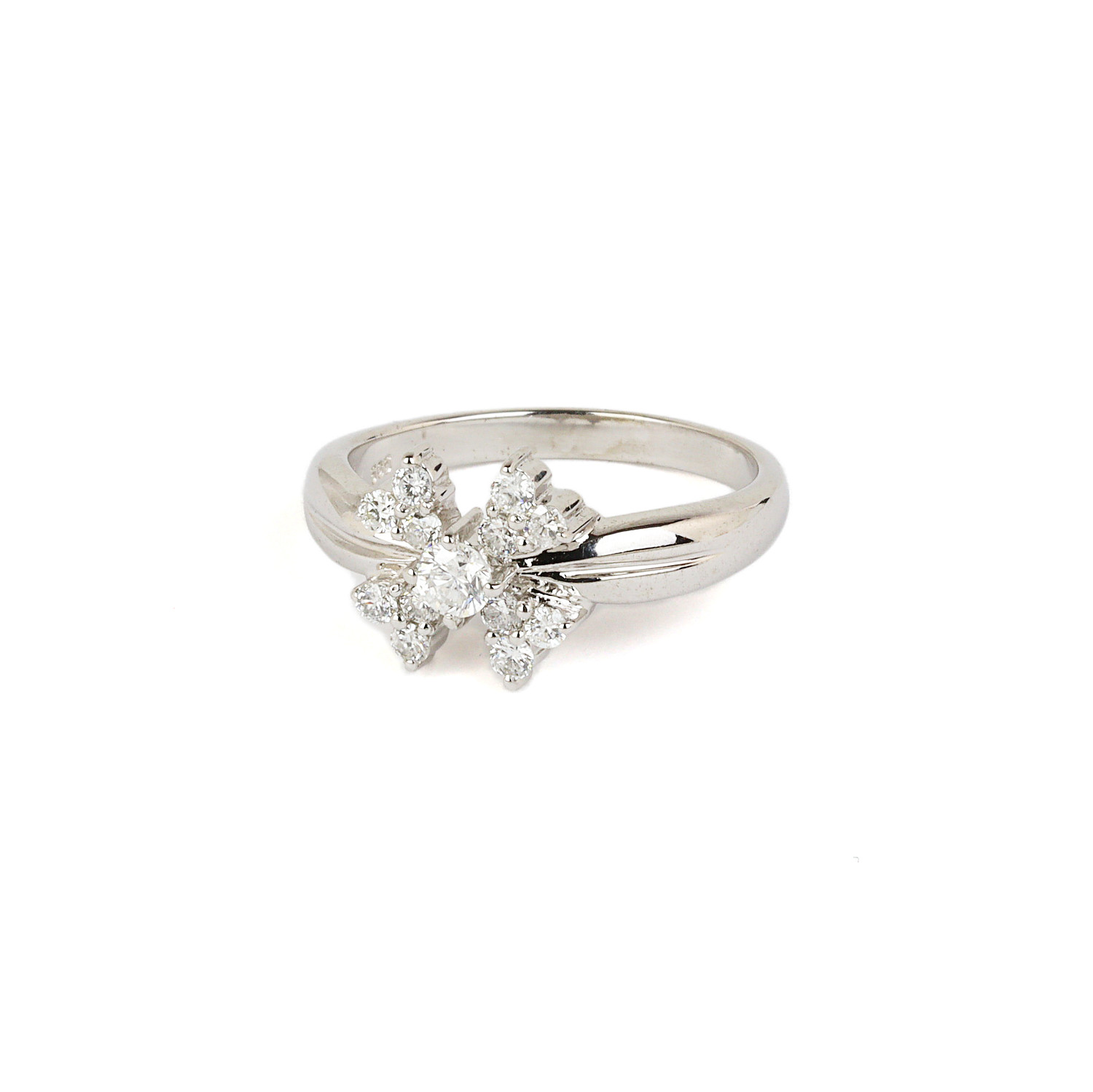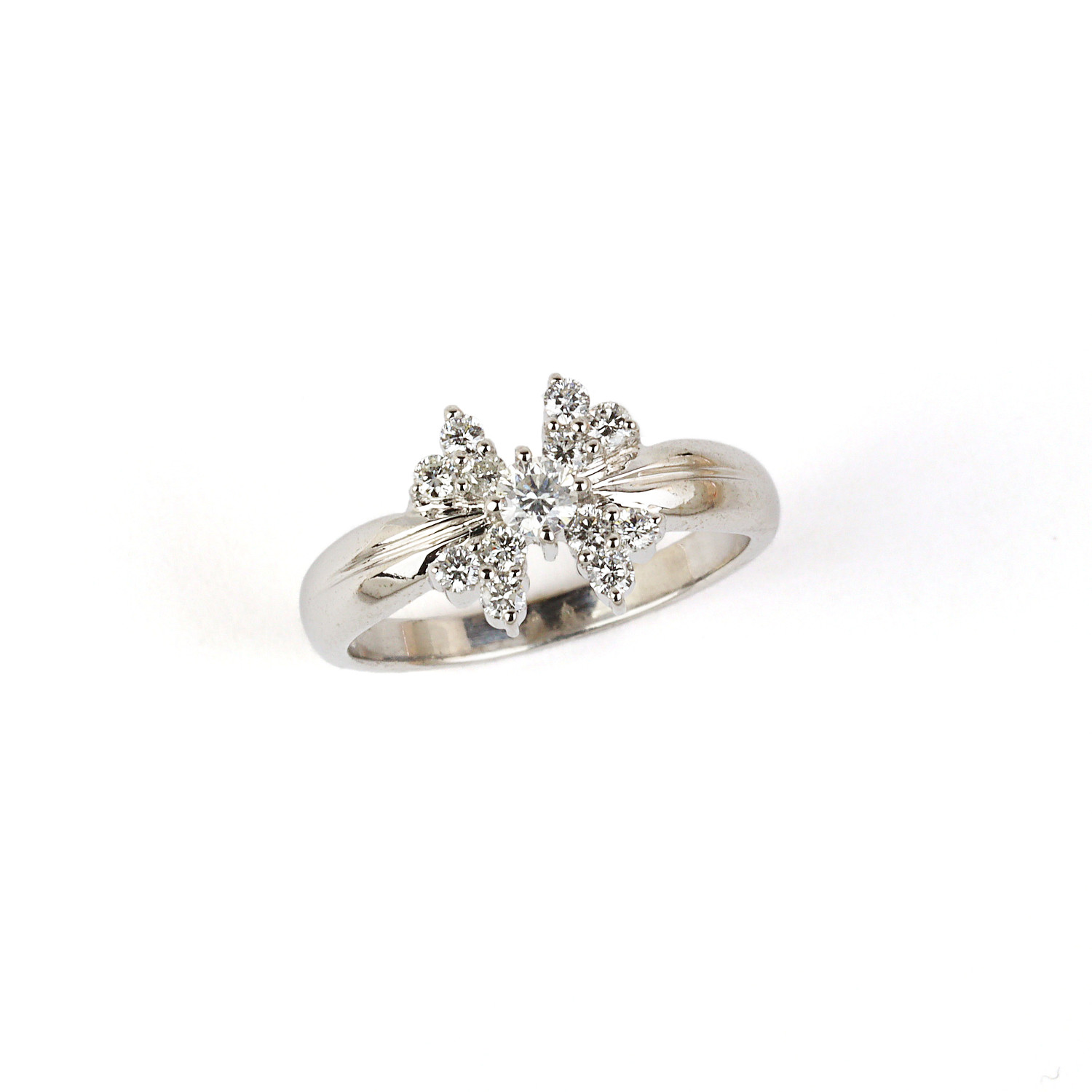14k white gold ring with diamonds which amount to approximately 0.50 carat TW (SI2-I1 clarity/G-H-I color). Fits a size 6.5 finger, measures 10mm wide across the top, and weighs 3.9 grams.