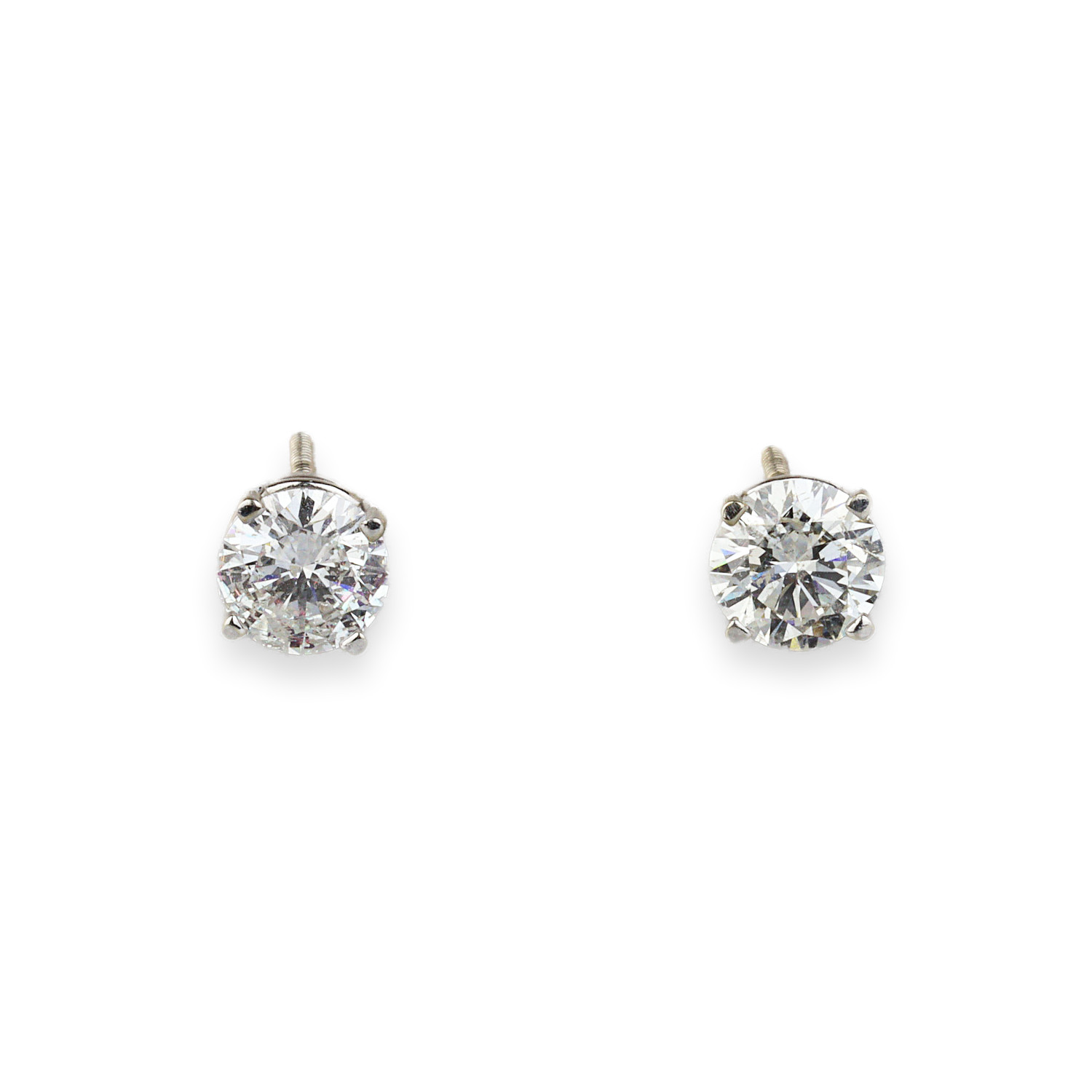 14k white gold earrings with diamonds which amount to approximately 0.90 carat TW (I1 clarity/F-G-H color). They measure 5mm in diameter and total weight is 0.8 gram.