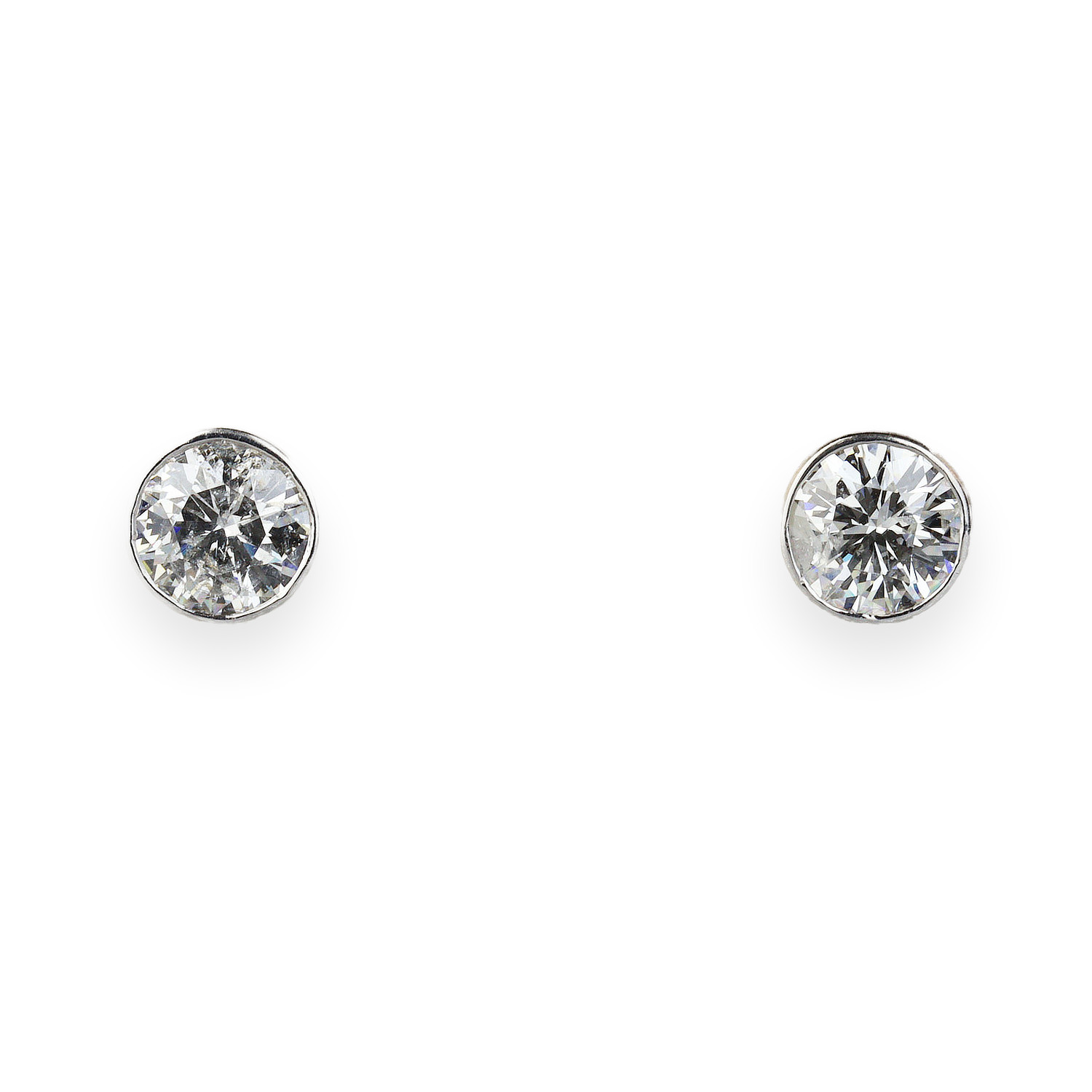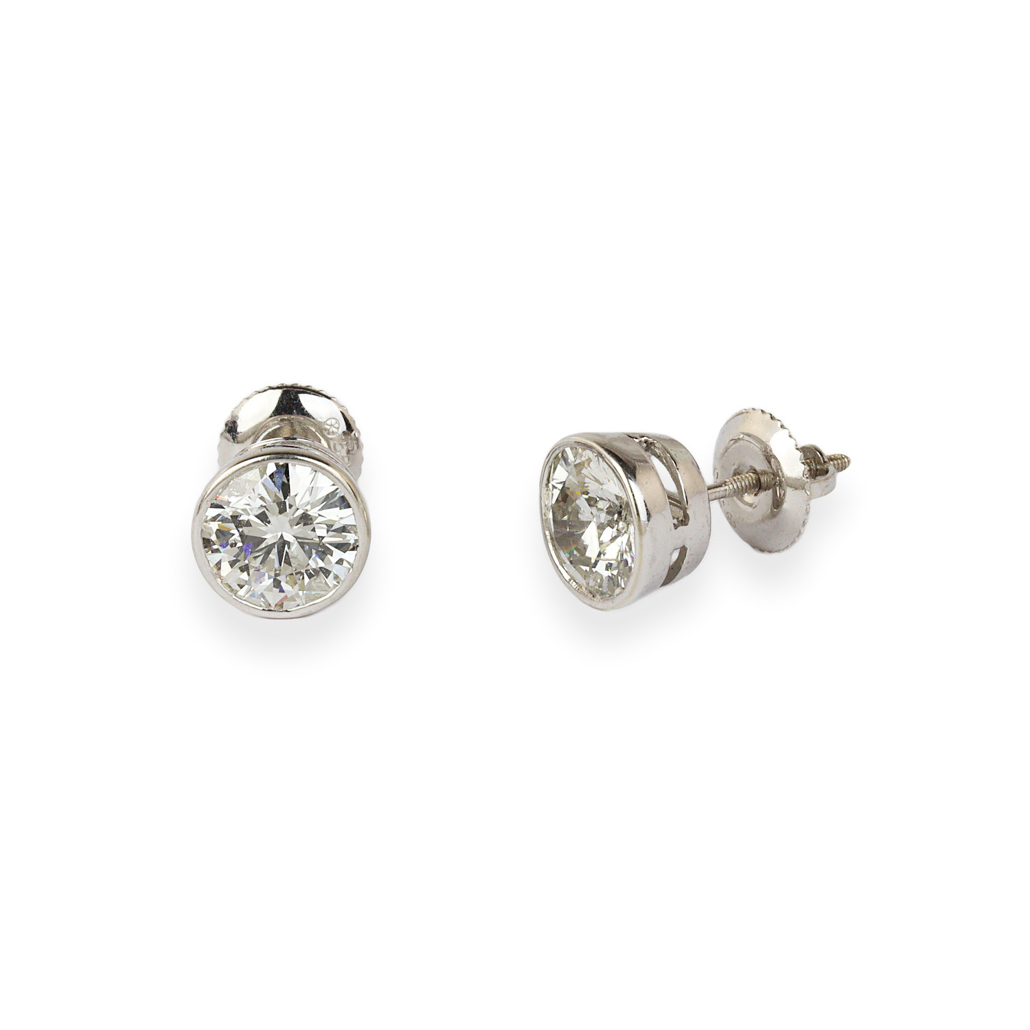 14k white gold earrings with diamonds which amount to approximately 2.52 carat TW (I1 clarity/G-H-I color). They measure 8mm in diameter and total weight is 2.2 grams.