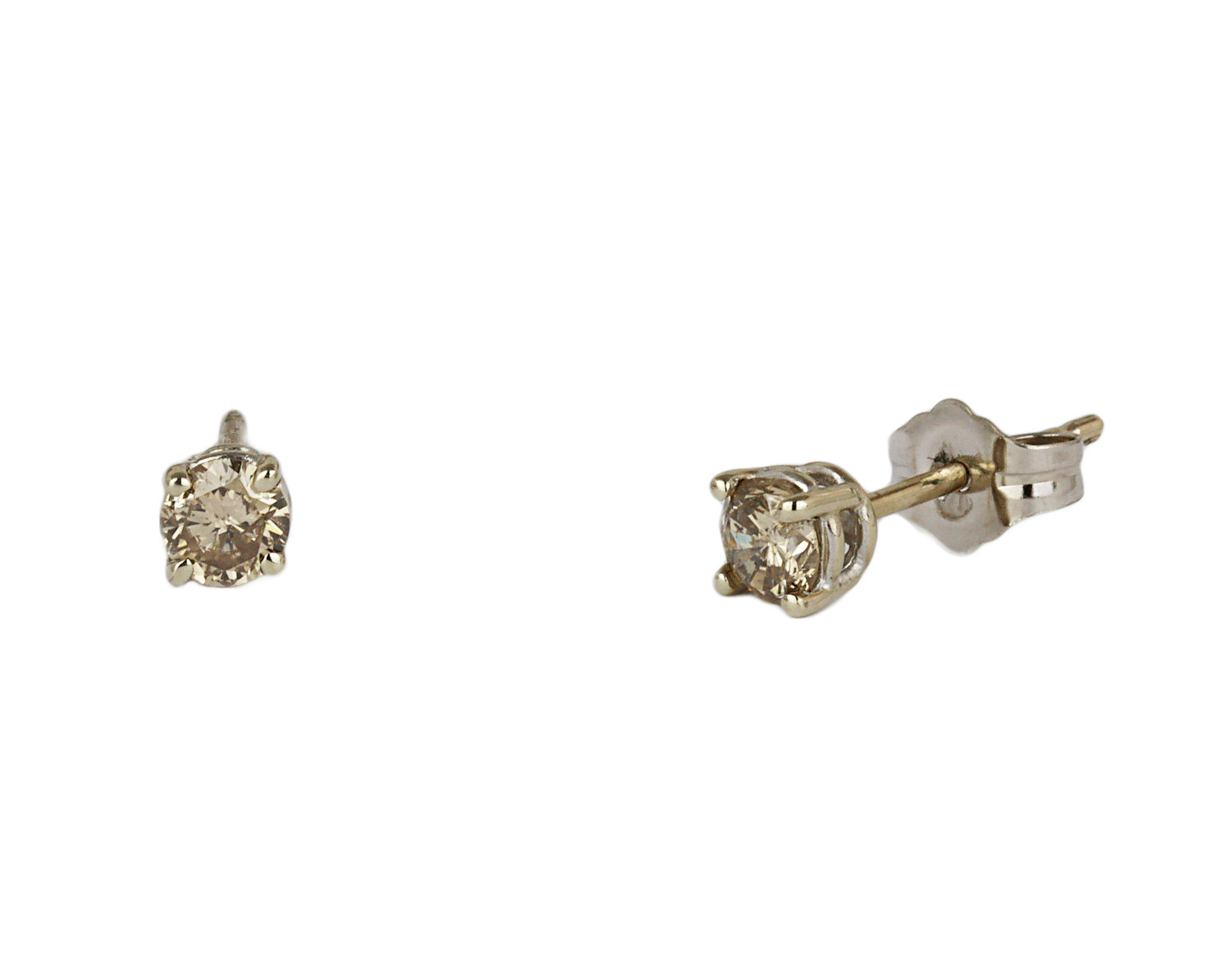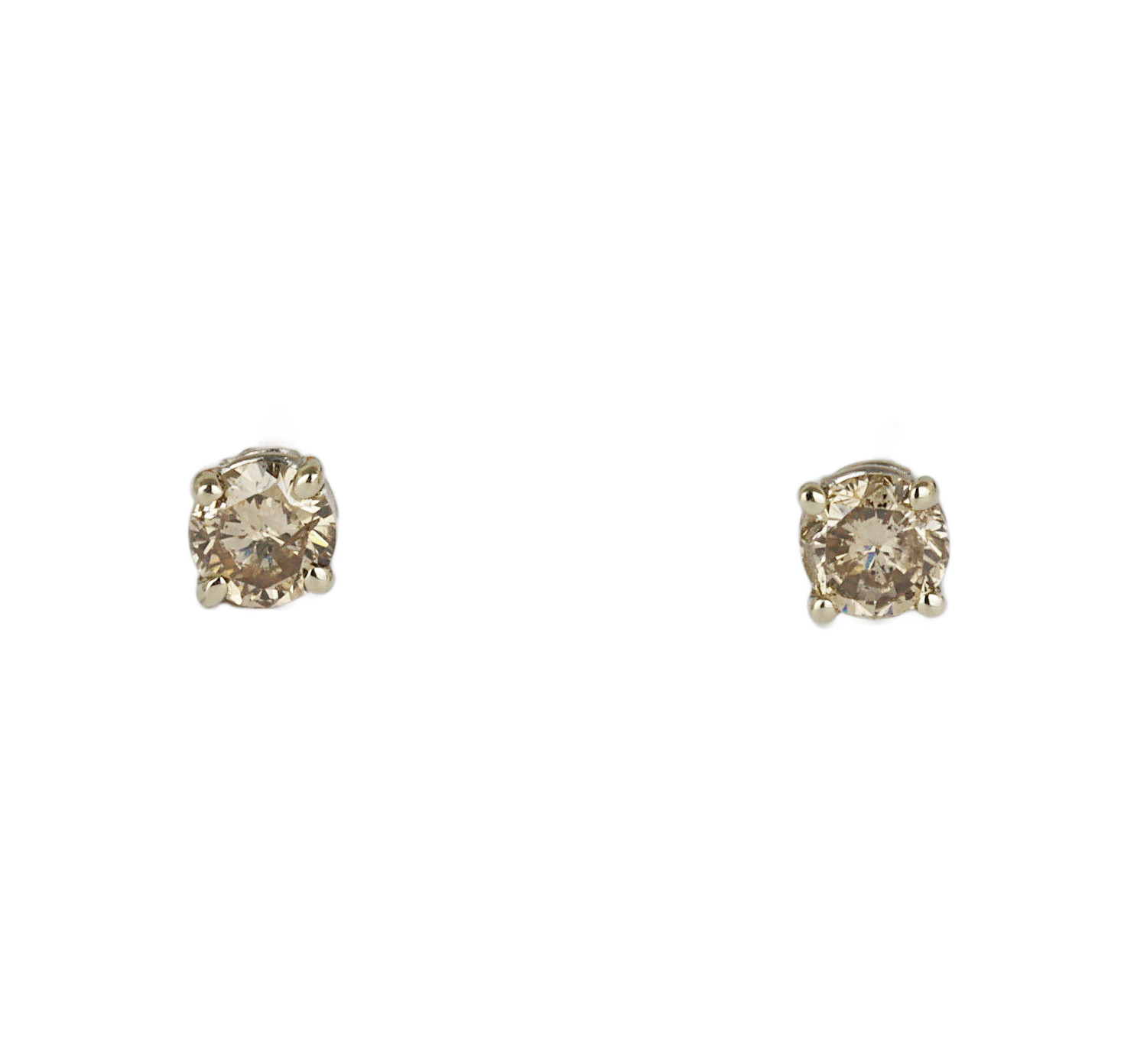 14k white gold stud earrings with diamonds which amount to approximately 0.40 carat TW (I1 clarity/light brown color). They measure 4mm in diameter and total weight is 0.8 gram.