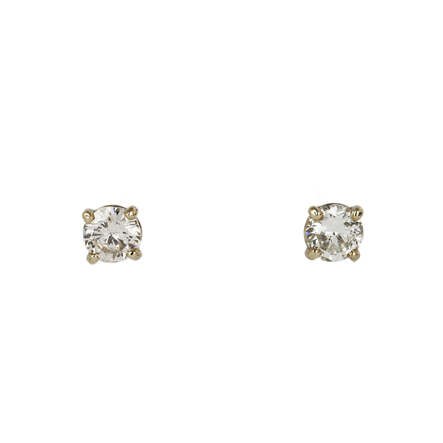 14k white gold earrings with diamonds which amount to approximately 1.15 carat TW (SI2 clarity/H-I color). They measure 5.5mm wide and total weight is 1.2 grams.