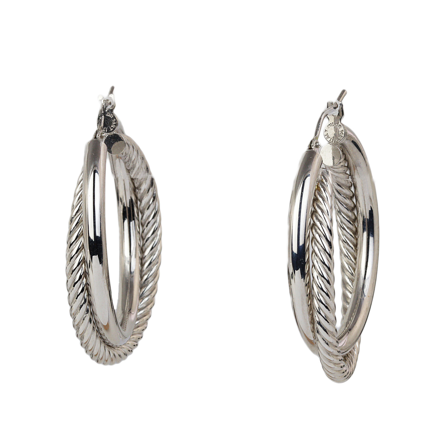 14k white gold earrings. They measure 32mm in diameter and total weight is 3.1 grams.