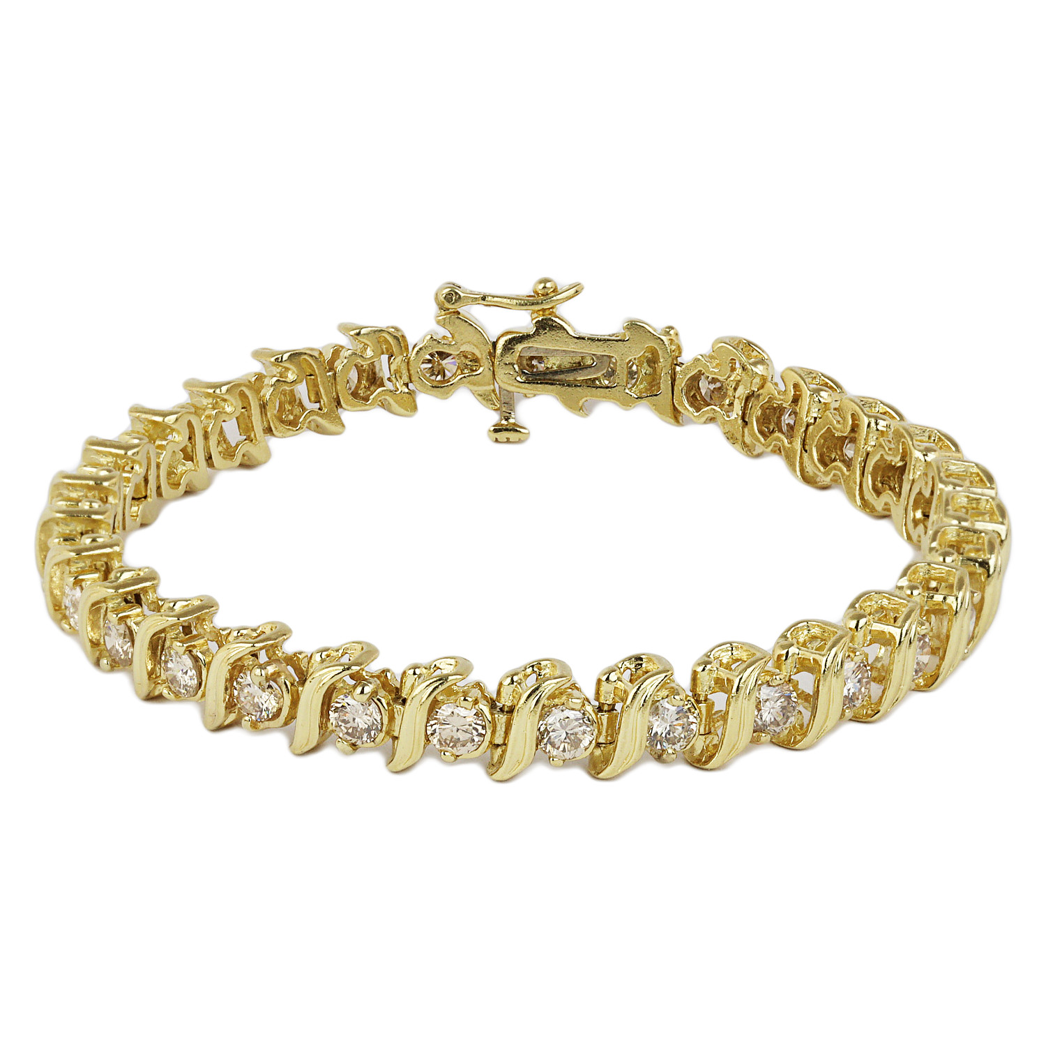 14k yellow gold bracelet with diamonds which amount to approximately 3.00 carat TW (SI2-I1 clarity/H-I-J color). It measures 7″ long, 7mm wide, and weighs 22.4 grams.