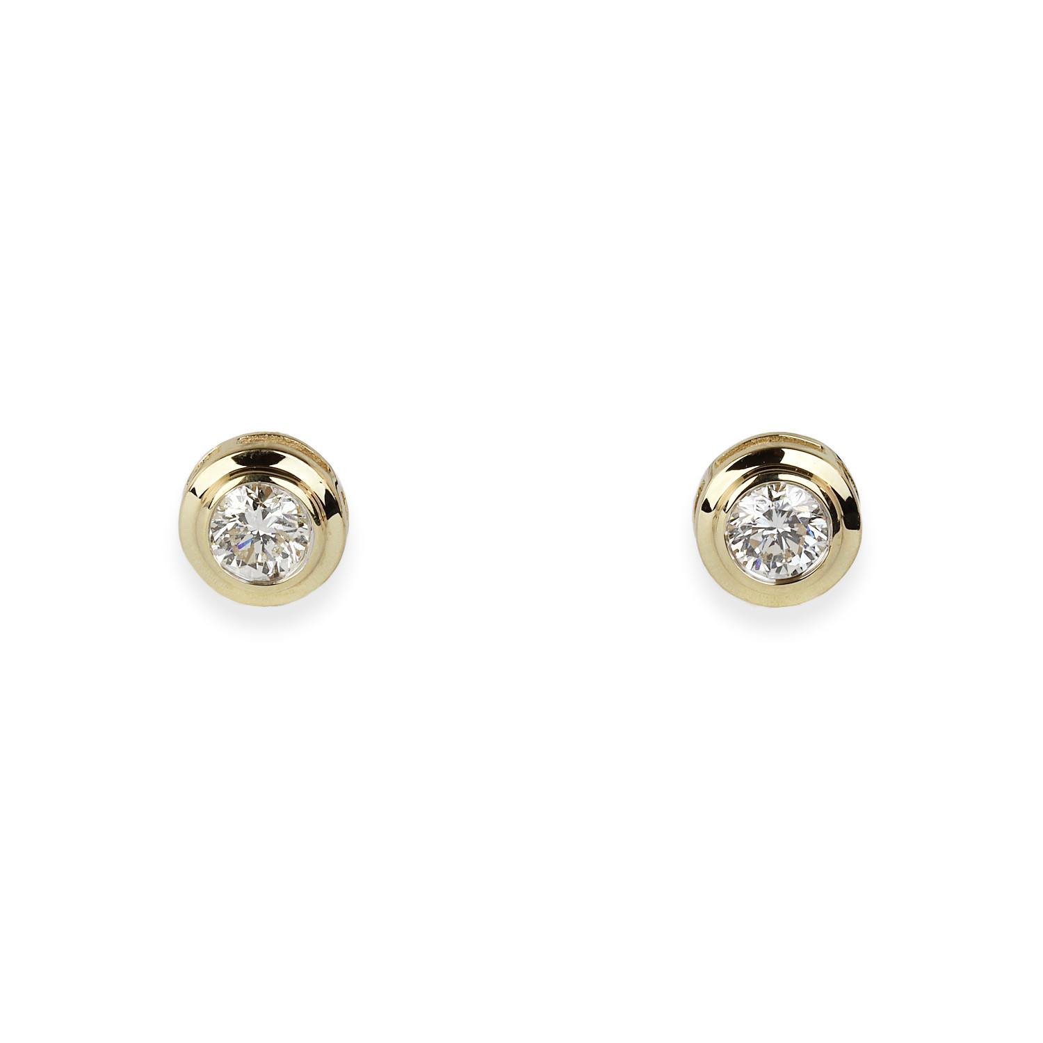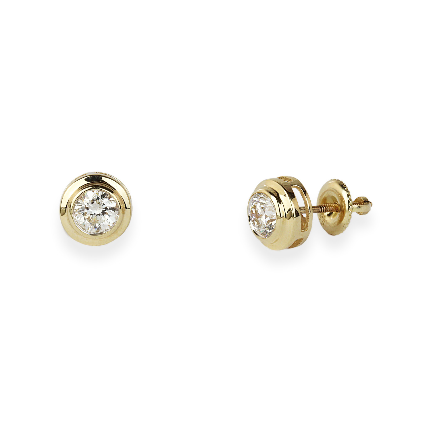14k yellow gold stud earrings with diamonds which amount to approximately 1.00 carat TW (SI2-I1 clarity/G-H-I color). They measure 8.5mm in diameter and total weight is 2.1 grams.