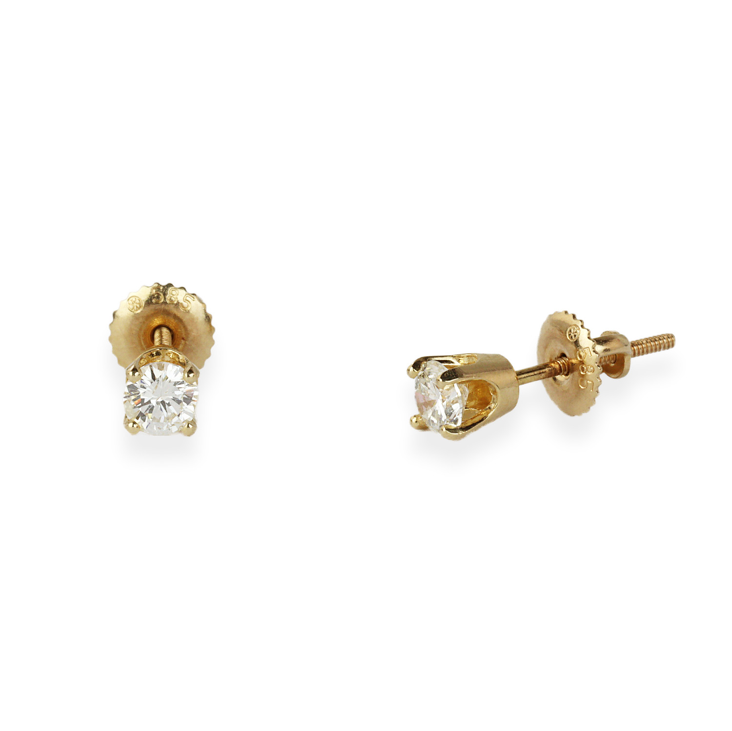 14k yellow gold earrings with diamonds which amount to approximately 0.53 carat TW (I1 clarity/H-I-J color). They measure 4mm in diameter and total weight is 1.2 grams.