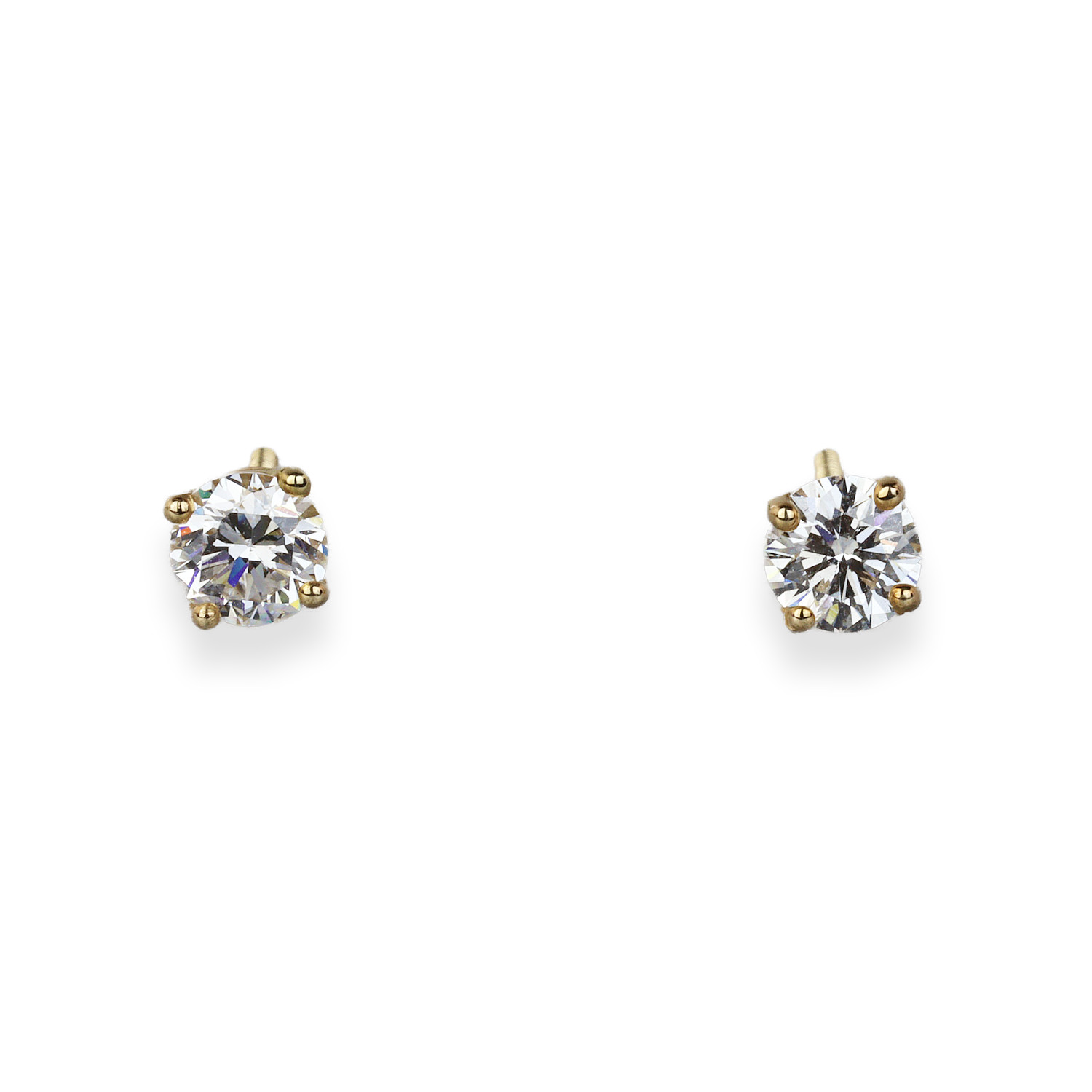 14k yellow gold earrings with diamonds which amount to approximately 1.02 carat TW (SI1-SI2 clarity/I-J-K color). They measure 5mm in diameter and total weight 1.3 grams.