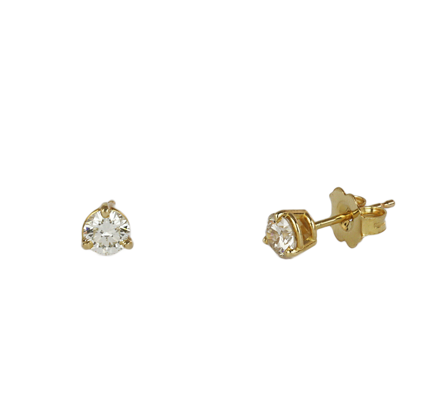 14k yellow gold earrings with diamonds which amount to approximately 0.62 carat TW (SI2 clarity/H-I-J color). They measure 5mm in diameter and total weight is 0.8 gram.