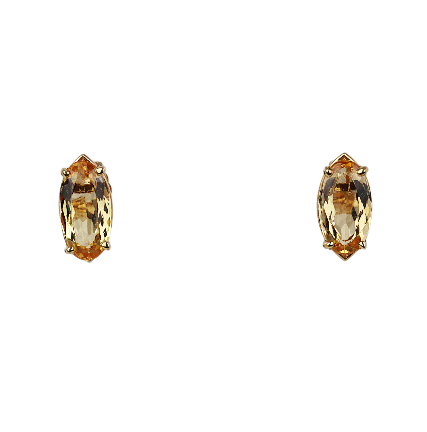 14k yellow gold stud earrings with precious topaz stones. They measure 11mm tall, 5mm wide, and total weight is 1.6 grams.