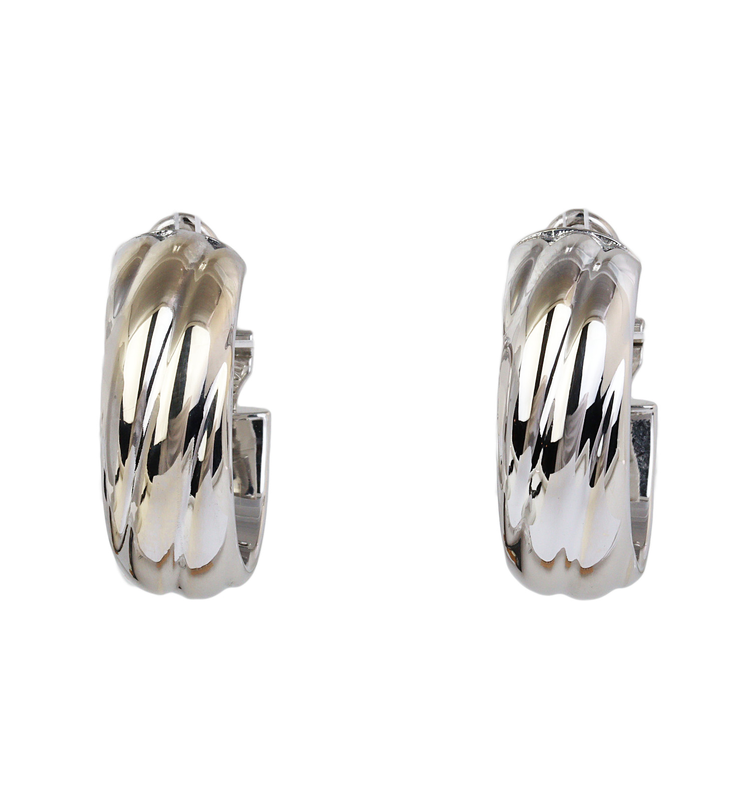 18k white gold earrings. They measure 23mm tall, 20mm wide, and total weight is 3.8 grams.