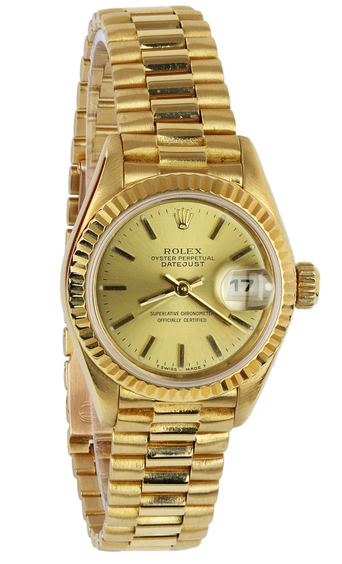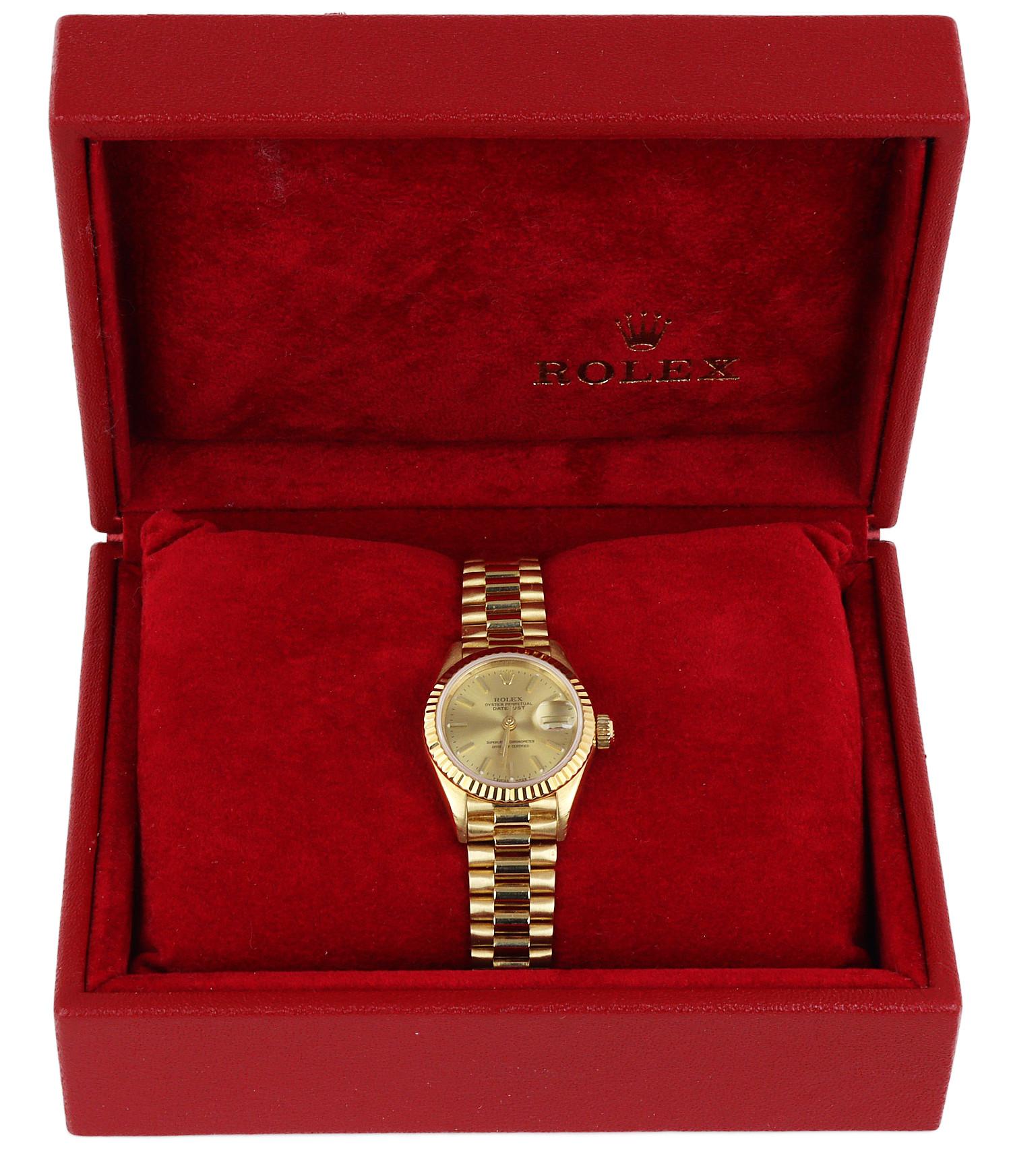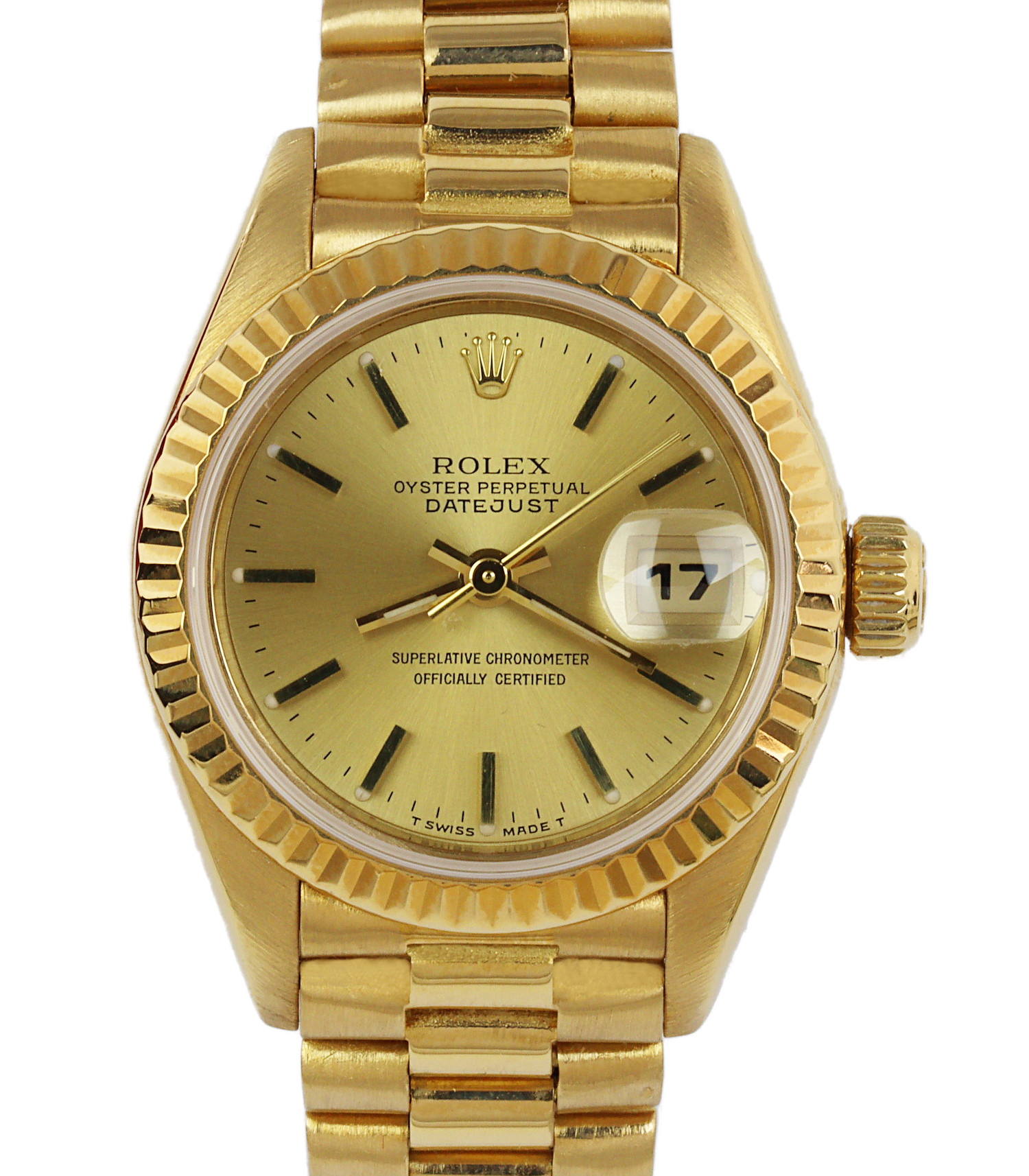 Rolex women’s 18k yellow gold Datjust 67918 wristwatch. Made circa 1989-1990. No documents are included.