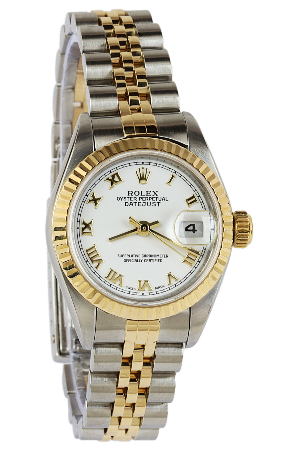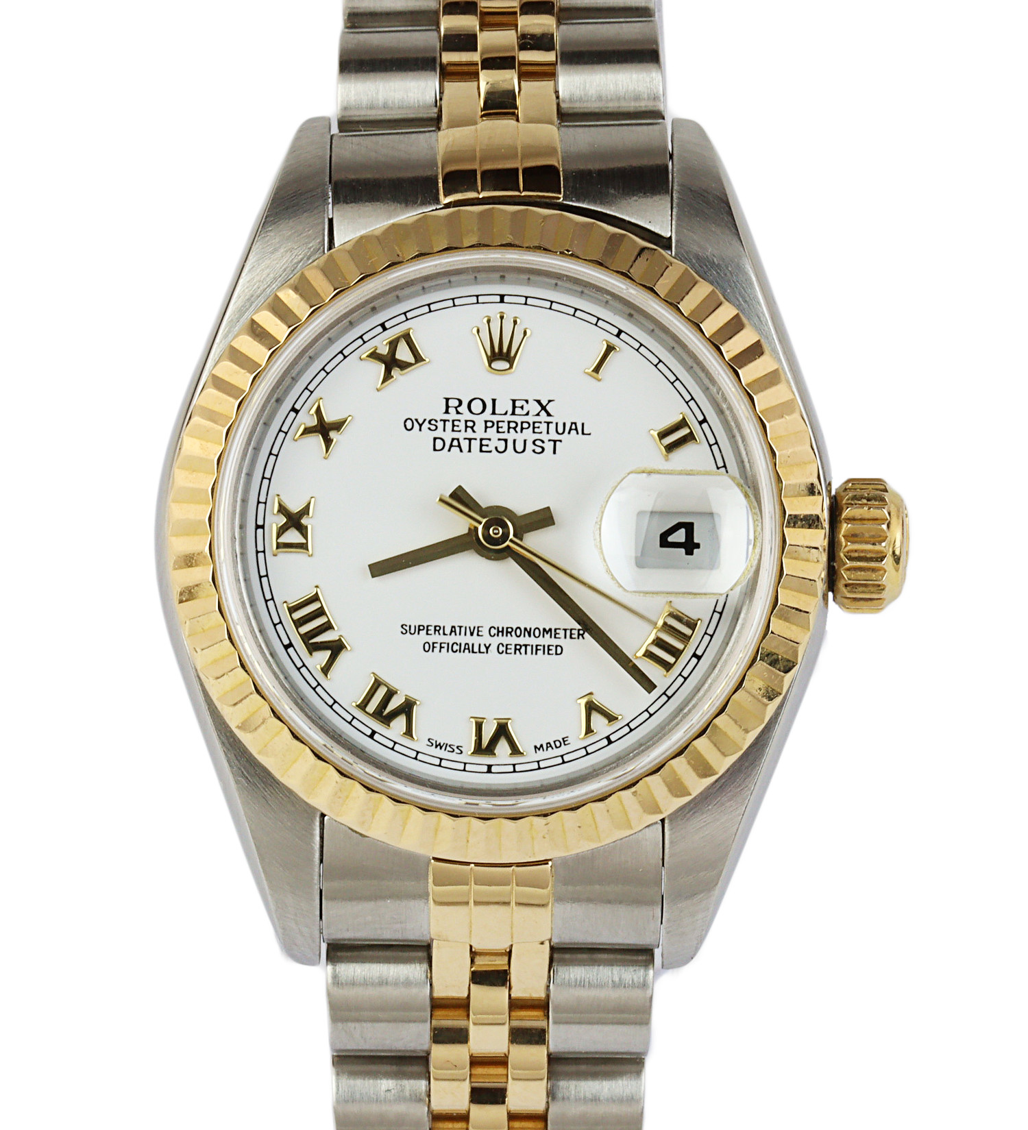 Rolex women’s 18k gold and stainless steel Datejust 79173 wristwatch. Made circa 2000-2001. Documents are not included in the sale.