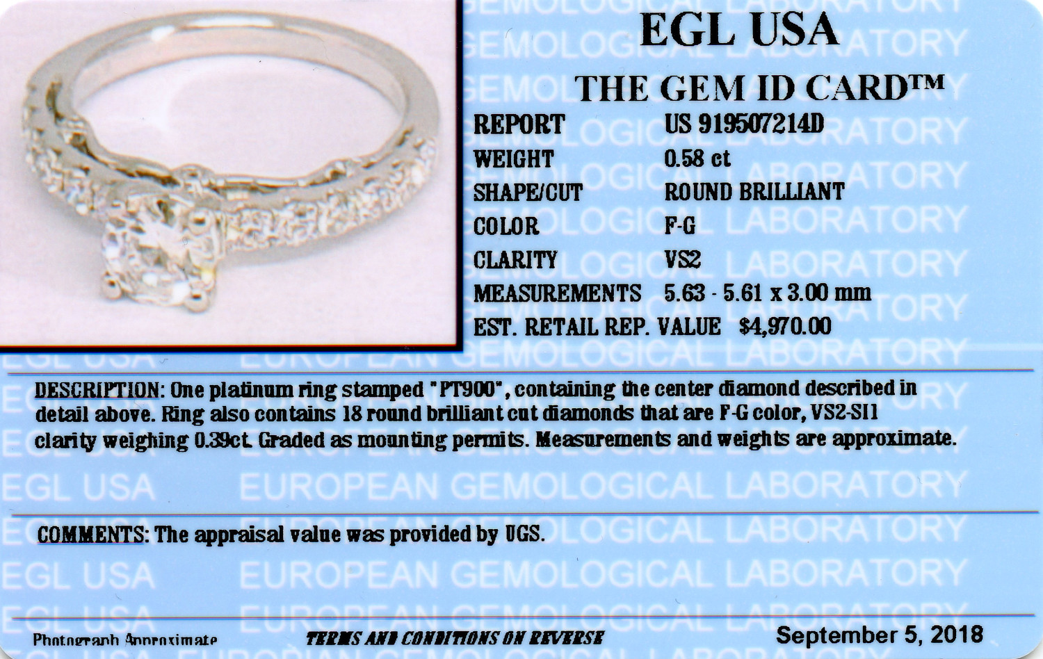 EGL cert # 919507214D is included in the sale.