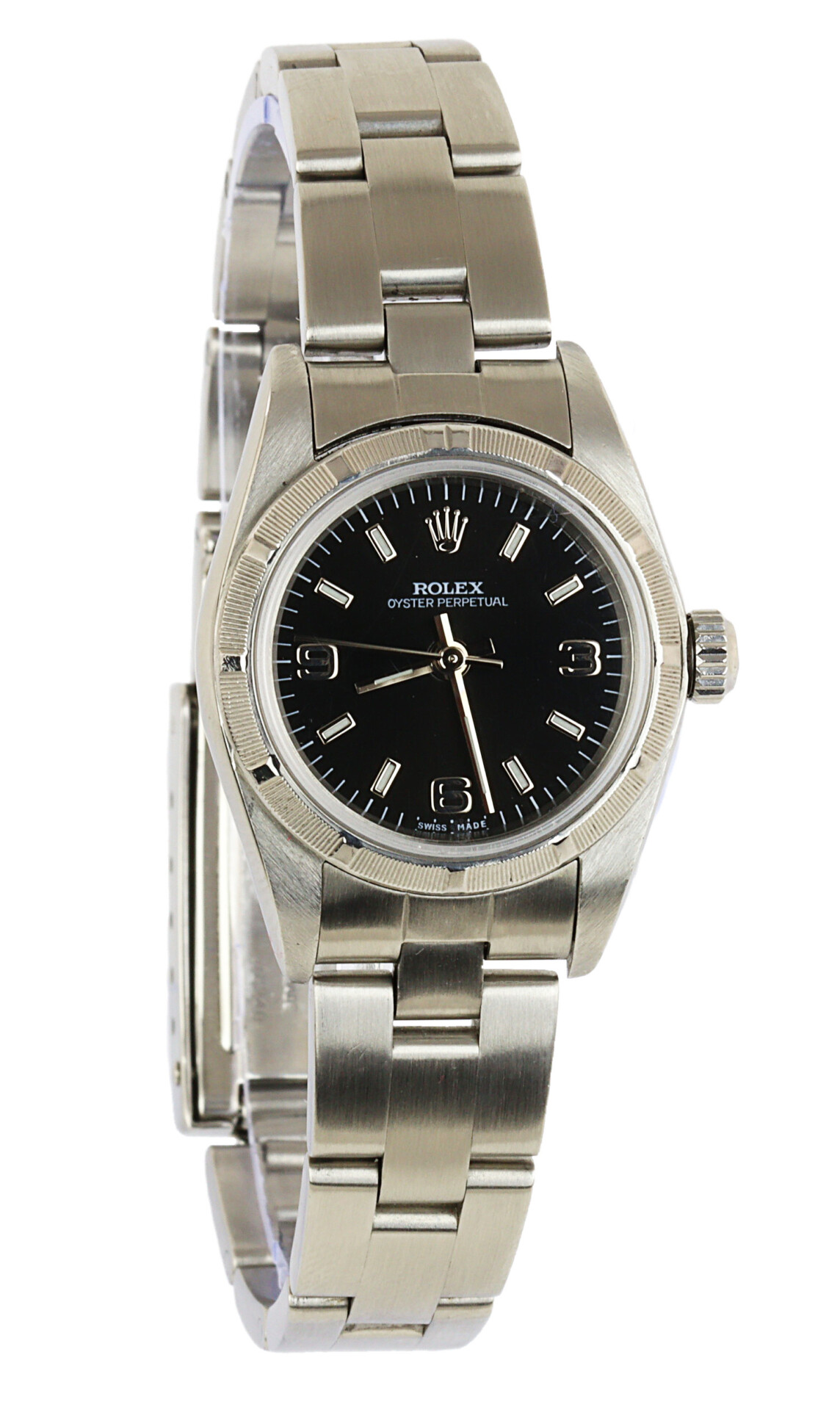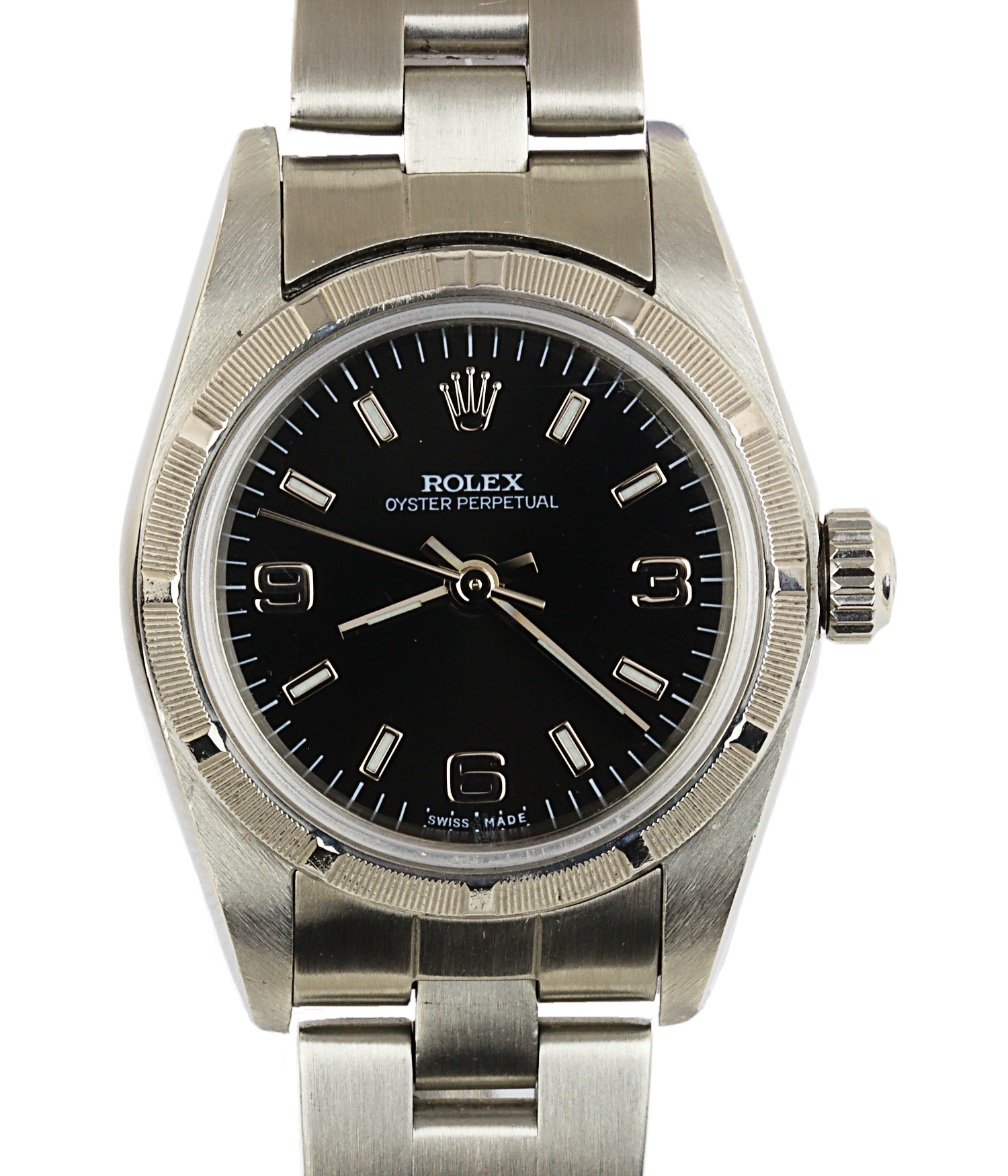 Rolex women’s stainless steel Oyster Perpetual 76030 wristwatch. Made circa 1999. No documents or box are included.